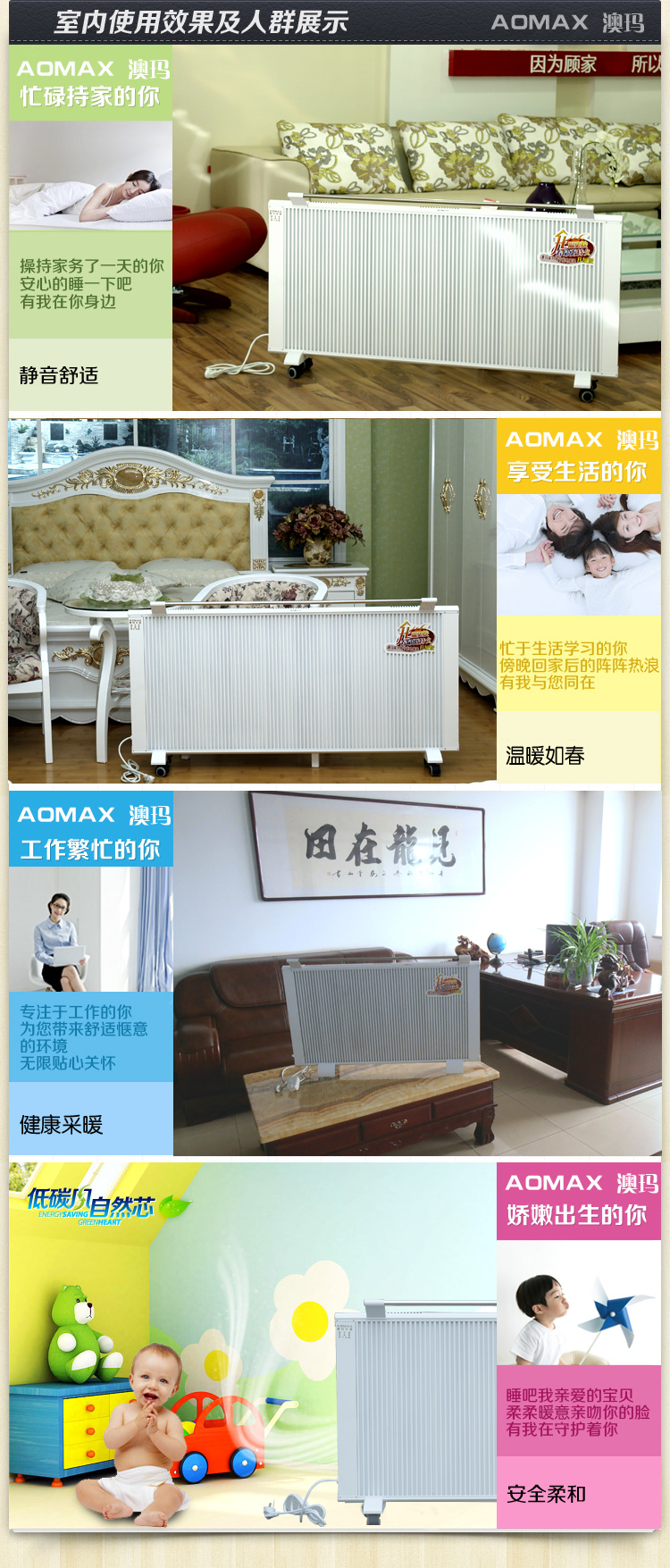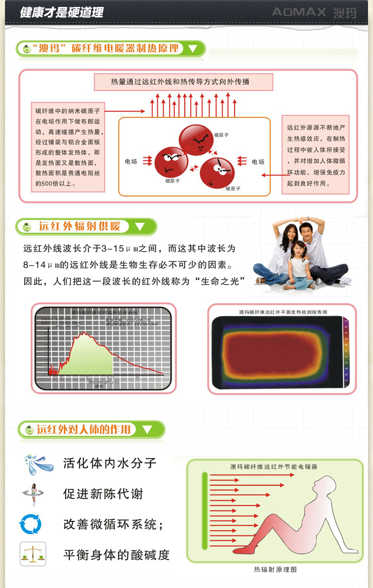 3、安全:由于在溫控器內(nèi)集成了限溫裝置,節(jié)能碳纖維電暖器的表面溫度可恒定在50-80℃左右。因此您完全不必?fù)?dān)心發(fā)生火災(zāi)或孩子被燙傷。